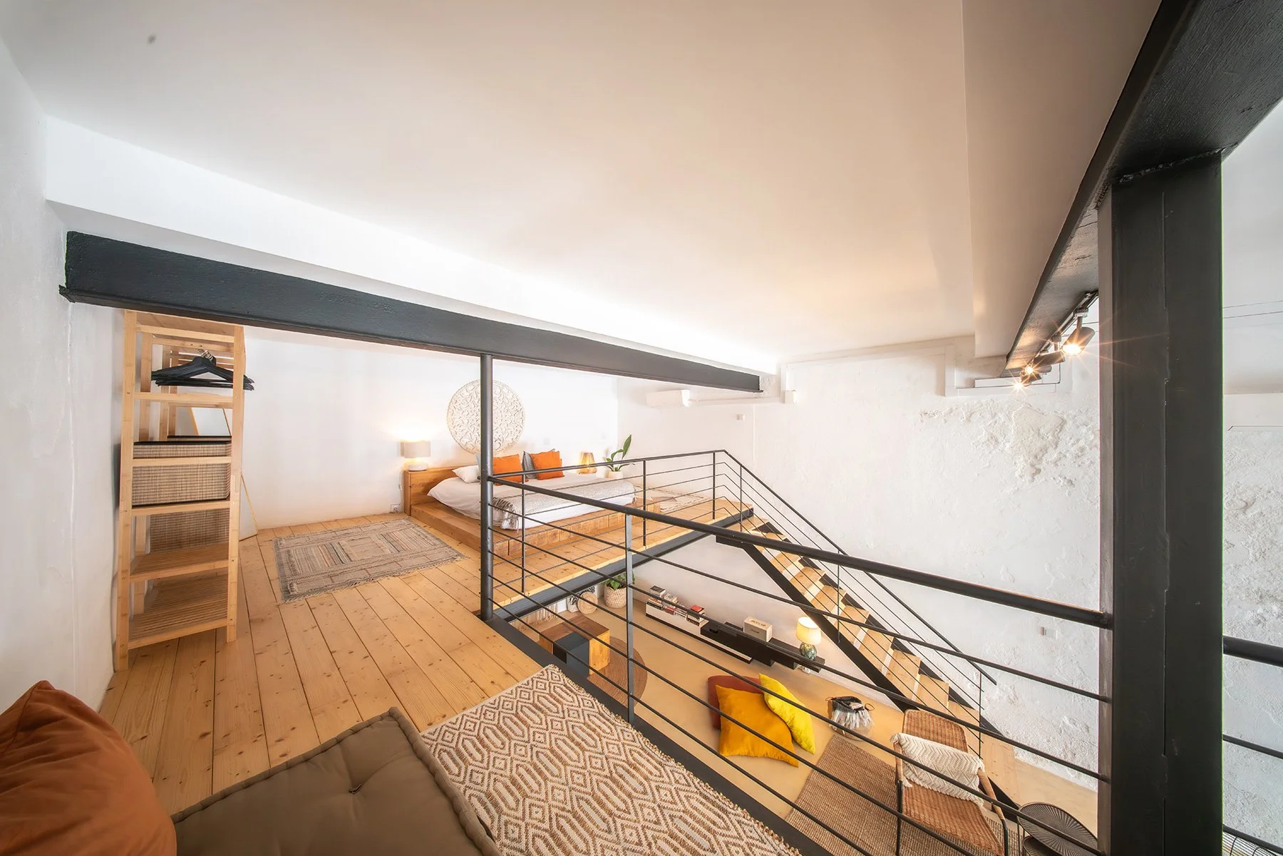 Sitting quietly on a street near Santa Apolónia Station in the historical area of São Vicente de Fora, is a magnificent south-facing ground floor loft unit. With a floor to ceiling height of 4.28m, the sense of space is absolutely breathtaking when you walk in through a deceptively unassuming front door. Spanning a usable area of 102m² with warm-toned concrete floors and exposed pipes, the space merges a sense of rustic charm with industrial chic. You would be forgiven for thinking you had stepped into a New York Warehouse apartment. It is rare to find such a style of property in Lisbon…